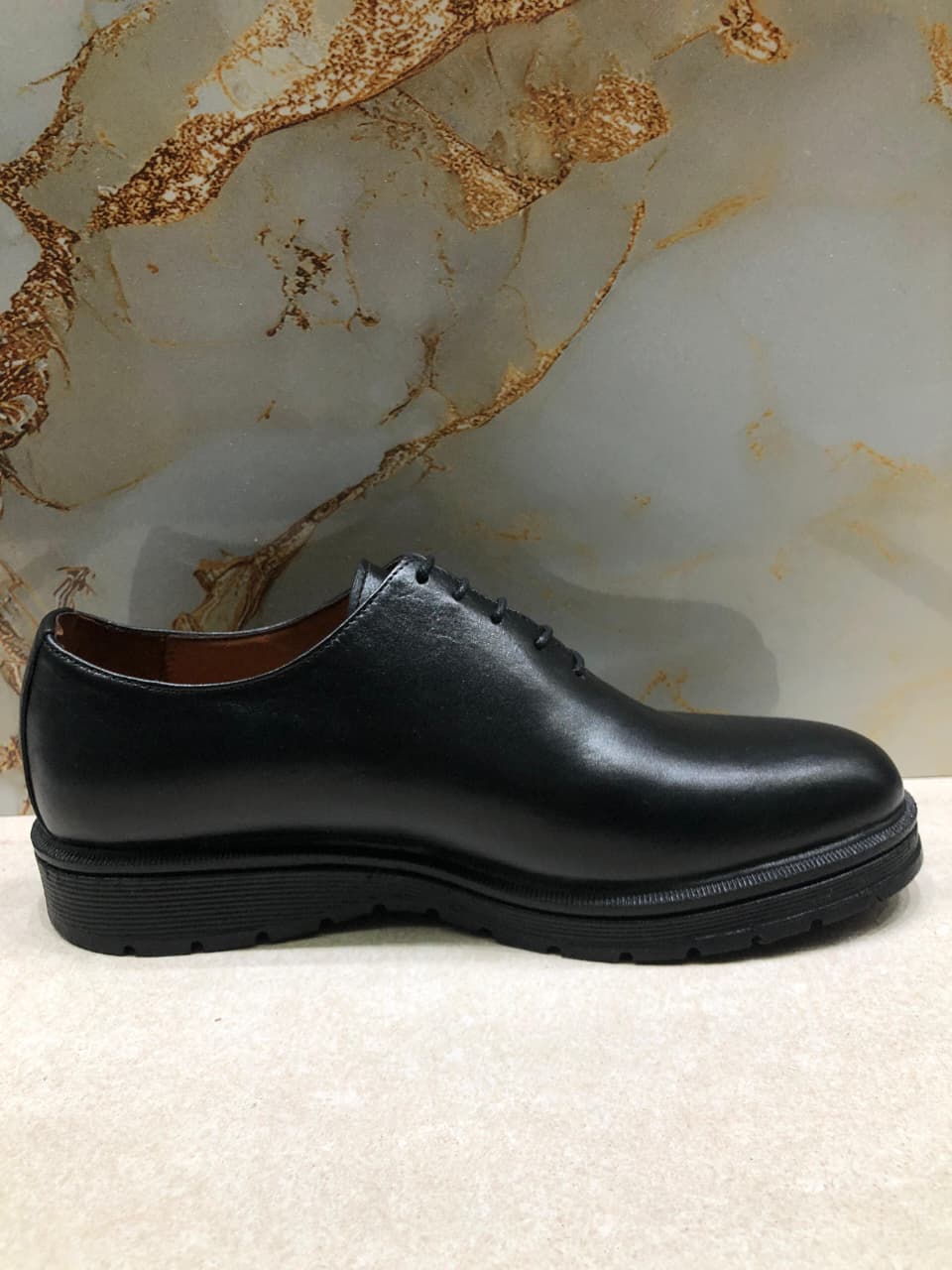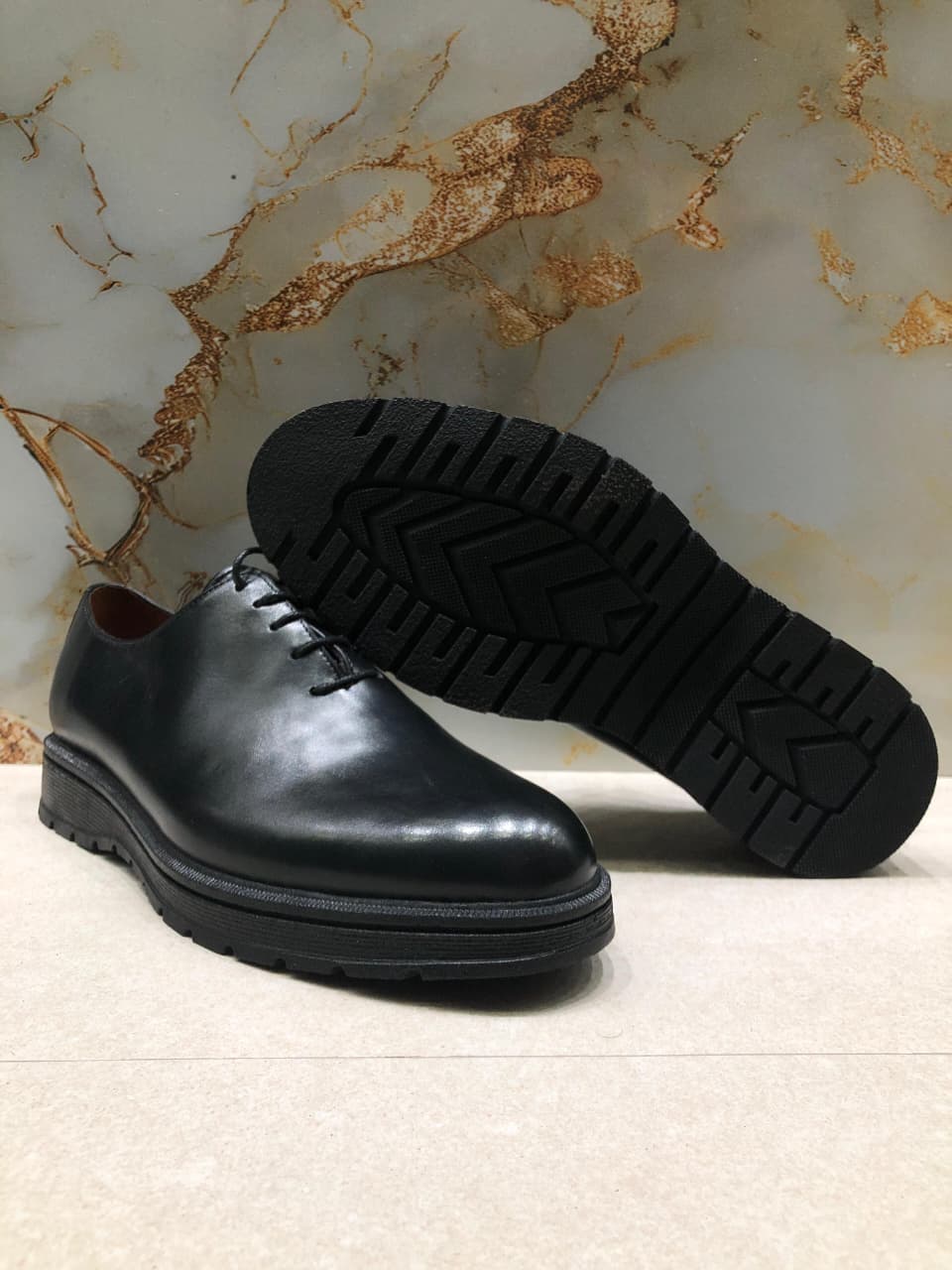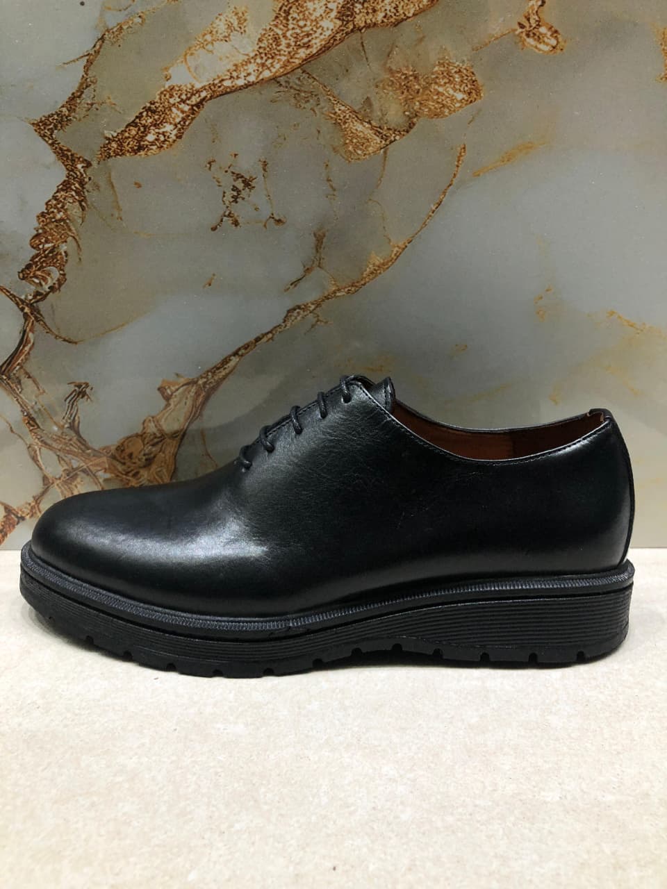 Ce Derby en cuir noir allie élégance classique et robustesse contemporaine. Son bout lisse apporte une finition sobre et raffinée, tandis que sa semelle épaisse offre confort et stabilité à chaque pas. Parfait pour un style chic et moderne, il se porte aussi bien au quotidien que p