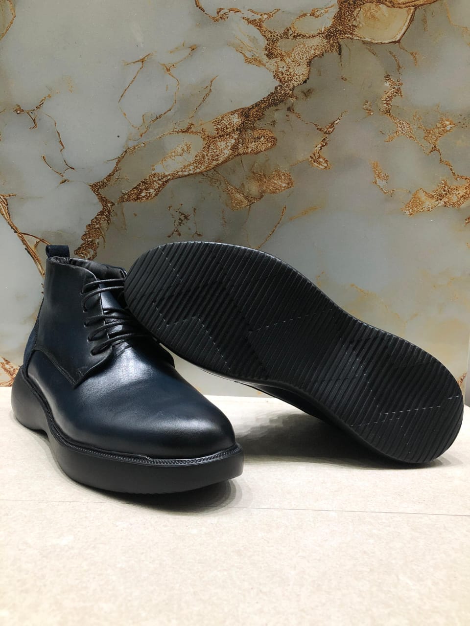 Chukka Boots : Cette botte à lacets bleue est confectionnée en cuir de qualité, alliant style moderne et élégance intemporelle. Sa couleur bleue distinctive apporte une touche d’originalité tout en restant facile à associer. Grâce à son laçage précis et sa conception confortable, elle est idéale pour un usage quotidien, entre allure raffinée et confort durable.